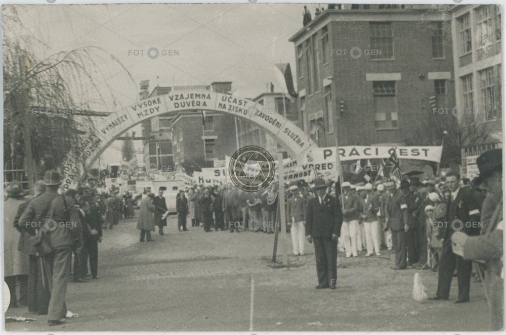 1. máj 1934 alive Baťovy catchword event factory Gottwaldov heslo lidé Menschen místopis people personál school slogan Svit topography továrna událost watchword zaměstnanci dráhy závody Zlín živá