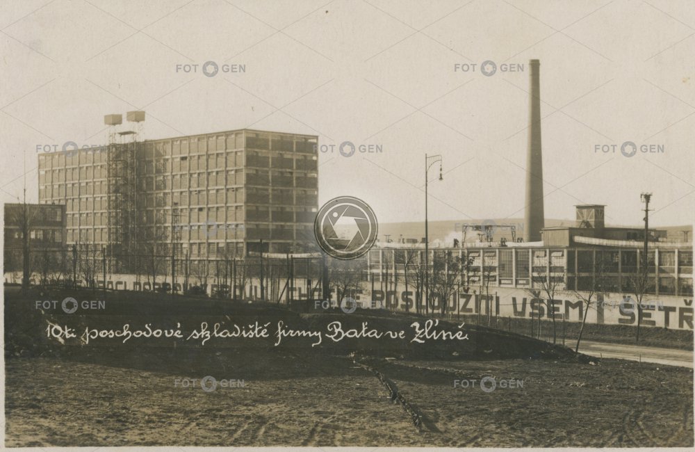 Baťa Baťovy catchword depot factory heslo chimney komín místopis repository sklad skladiště slogan stock store storeroom Svit topography továrna wall warehouse watchword závody zeď Zlín