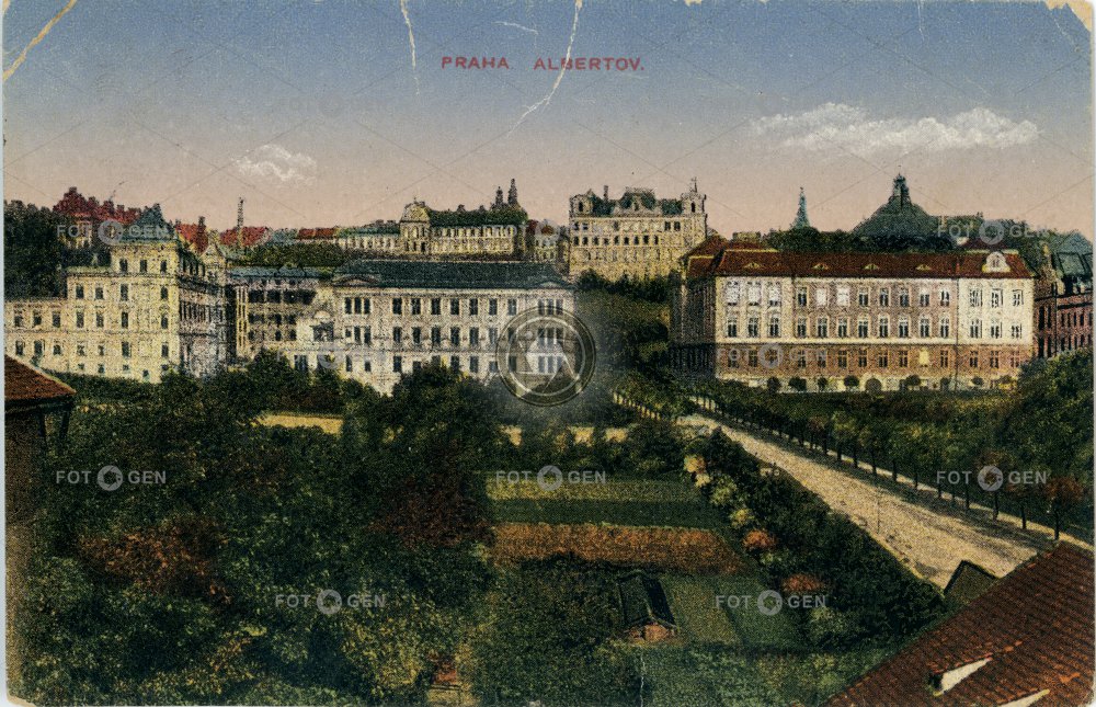 1918 Albertov barevná color colored garden Karlov kolorovaná místopis New Town Nové Město Prague Praha topography zahrada