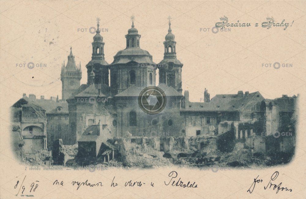 1897 asanace chrám sv. Mikuláše church Jewish ghetto Jewish town Josefov kostel svatého Mikuláše místopis Prague Praha sanitation St. Nicholas St. Nicholas Church sv. Mikuláše topography židovské geto židovské město