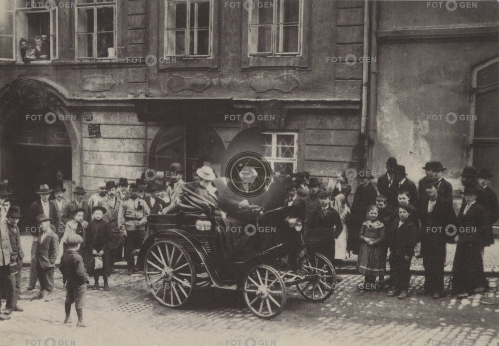 1898 alive auto Benz car clothes děti dítě dobové oblečení event child Kind Lesser Town lidé Malá Strana Menschen místopis Nerudova people pouliční ruch Prague Praha street traffic topography událost živá