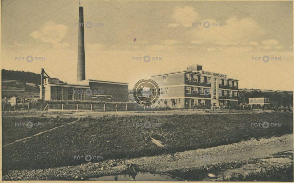 Baťova Baťova nemocnice Dřevnice hlavní hospital chimney KNTB komín místopis nemocnie řeka Tomáše Bati topography Zlín
