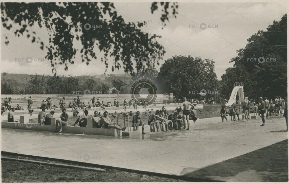 1942 Baťák bazén Gottwaldov klouzačka koupaliště koupání leisure lidé Menschen místopis people pool skluzačka slide swimming pool topography volný čas Zlín