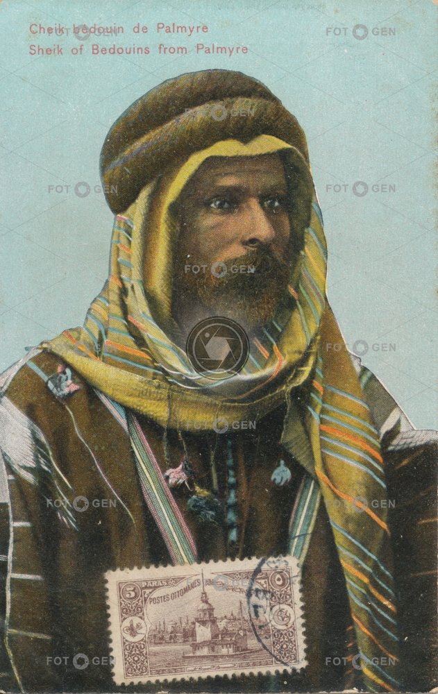 arab arabové Arabs badawí barevná Bedouins beduin clothes color colored ethnology etnologie kolorovaná man mann muž náčelník oblečení orient orientální Palmýr Palmýra portrait portrét sheik Syria Sýrie šejch šejk Tadmor Tedmurtá tradiční šaty traditional dress