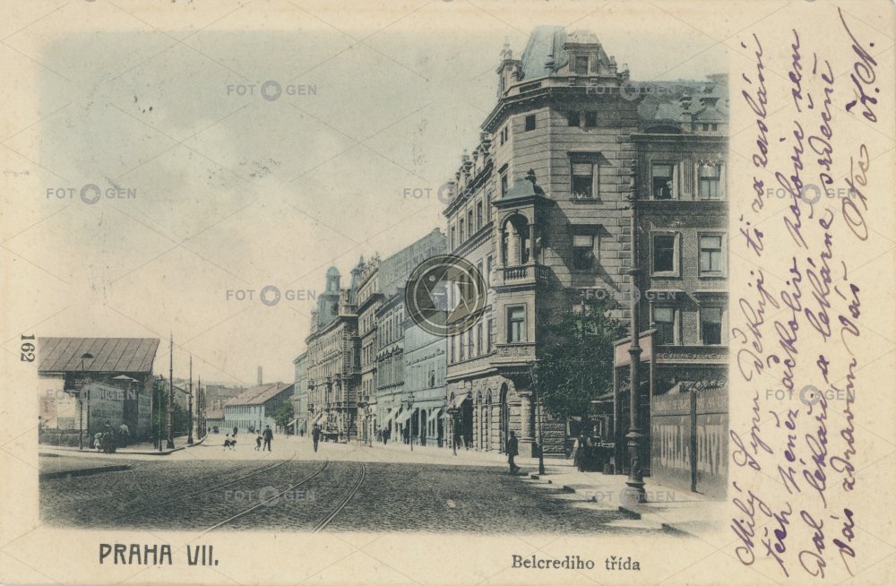 1906 barevná Belcrediho Belcrediho street Belcrediho třída colored Holešovice kolorovaná Milady Horákové místopis Prague Praha Praha 7 street Milada Horakova topography
