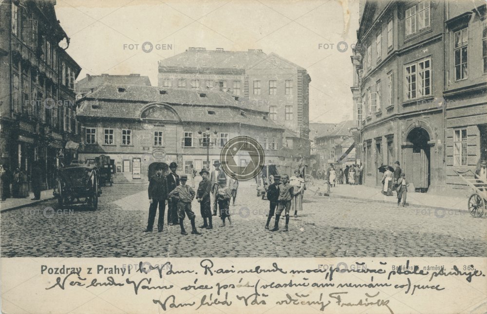 1900 alive Bethlehem Betlémské náměstí děti horse-drawn carriage children Karel Bellmann koňský povoz místopis museum muzeum Náprstkovo muzeum Old Town Prague Praha Staré Město topography živá