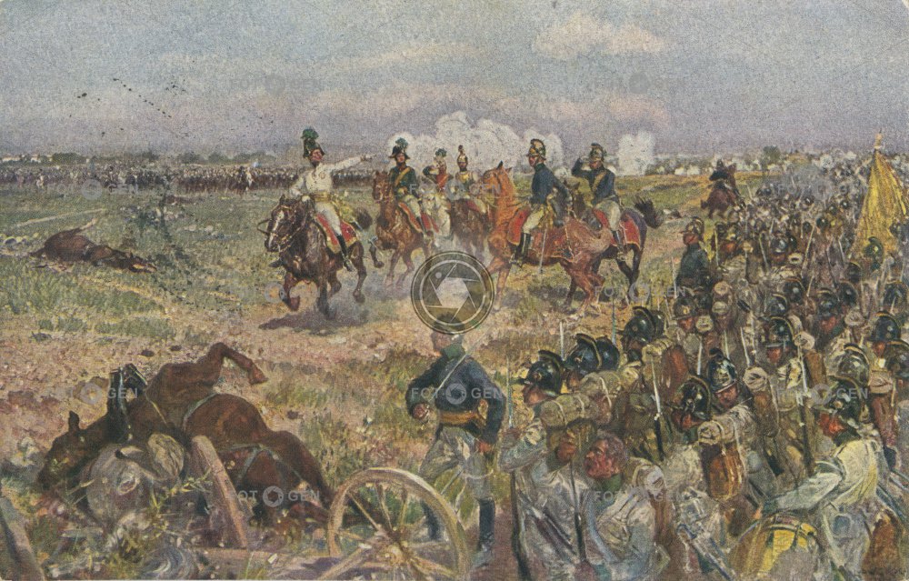 1809 arcivévoda Karel army art barevná battle battlefield Bitva u Aspern boj color colored drawing event fight France Francie kolorovaná kresba malba napoleonská válka painting Soldat soldier událost umění uniform uniforma válka vojáci voják vojna vojsko war