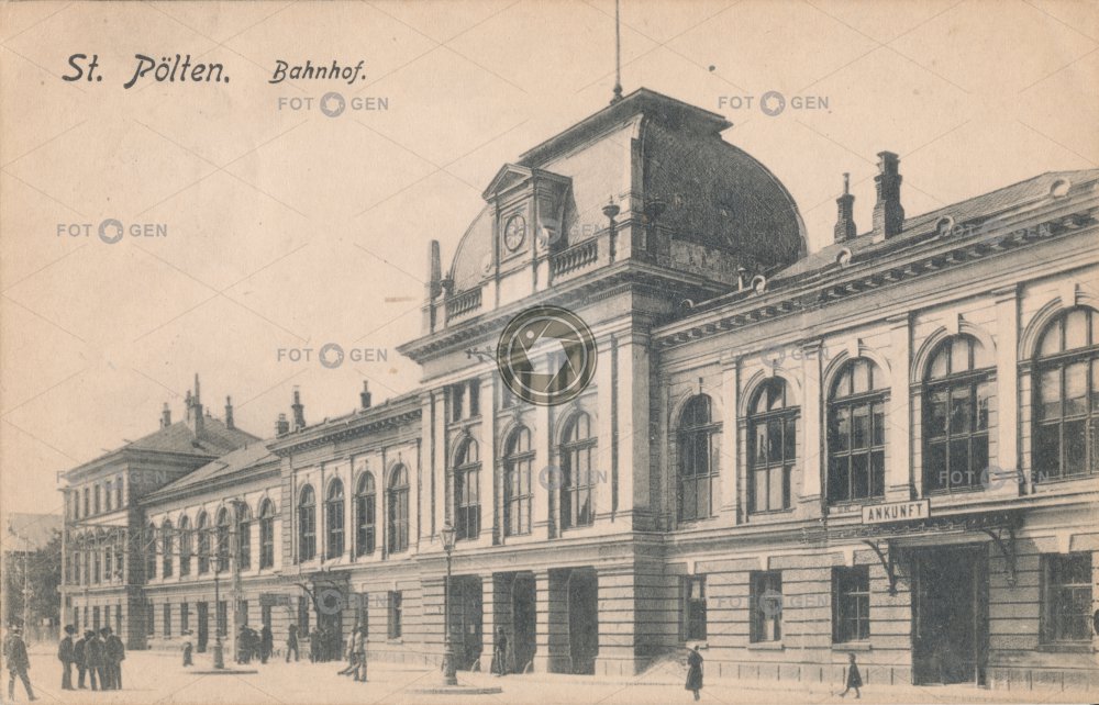 1913 Austria Ausztria Bahnhof budova Dolní Rakousy doprava dráha místopis nádraží nádražní Niederösterreich Österreich Rakousko St. Pölten stacja kolejowa station Svatý Hypolit topography transport trať vasútállomás železnice železniční