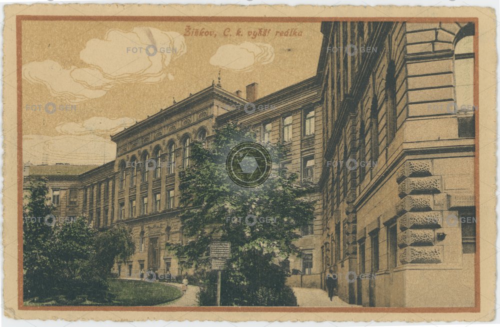 1917 C.k. vyšší realka colored high school higher secondary school kolorovaná místopis Prague Praha reálka school Sladkovského škola topography Žižkov