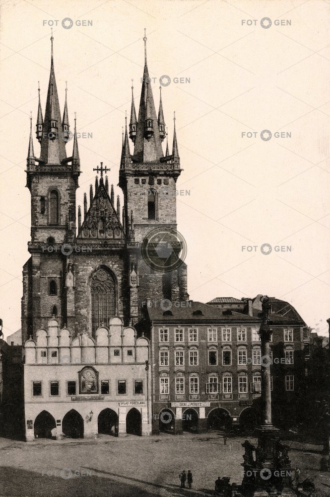 arcades Marian column Mariánský sloup místopis Old Town Square podloubí Prague Praha Staroměstské náměstí topography towers Tyn Church Týnský chrám věže Virgin Mary