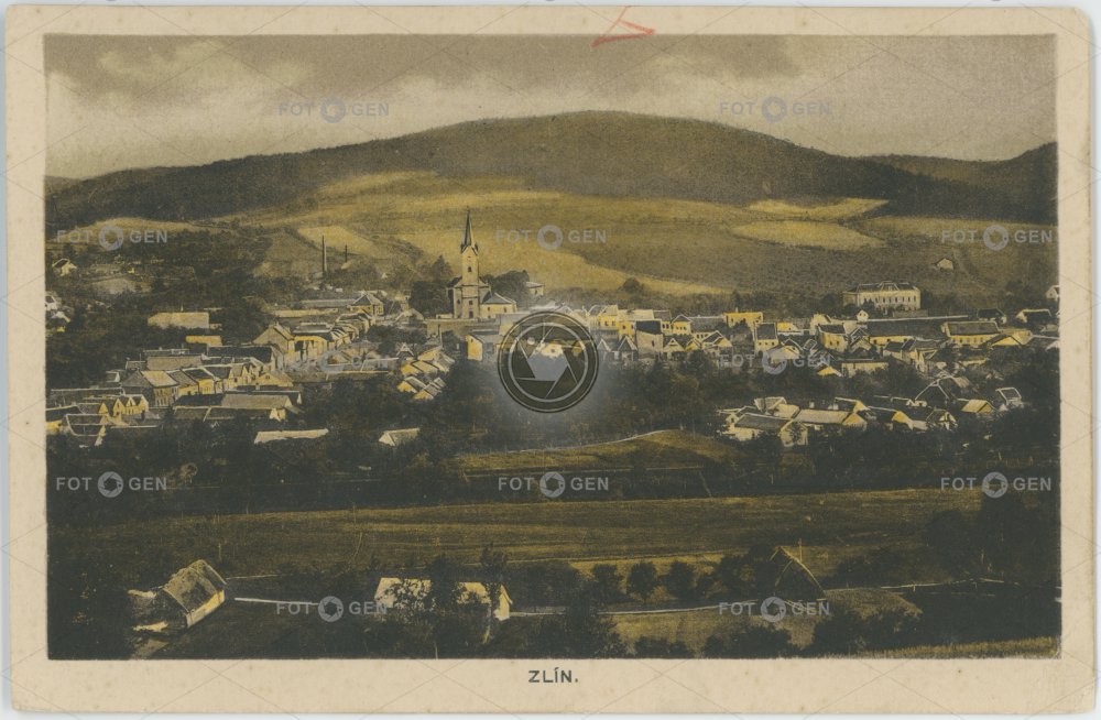 barevná celkový color colored Dlouhá church Kirche kolorovaná kostel místopis panorama topography Zlín