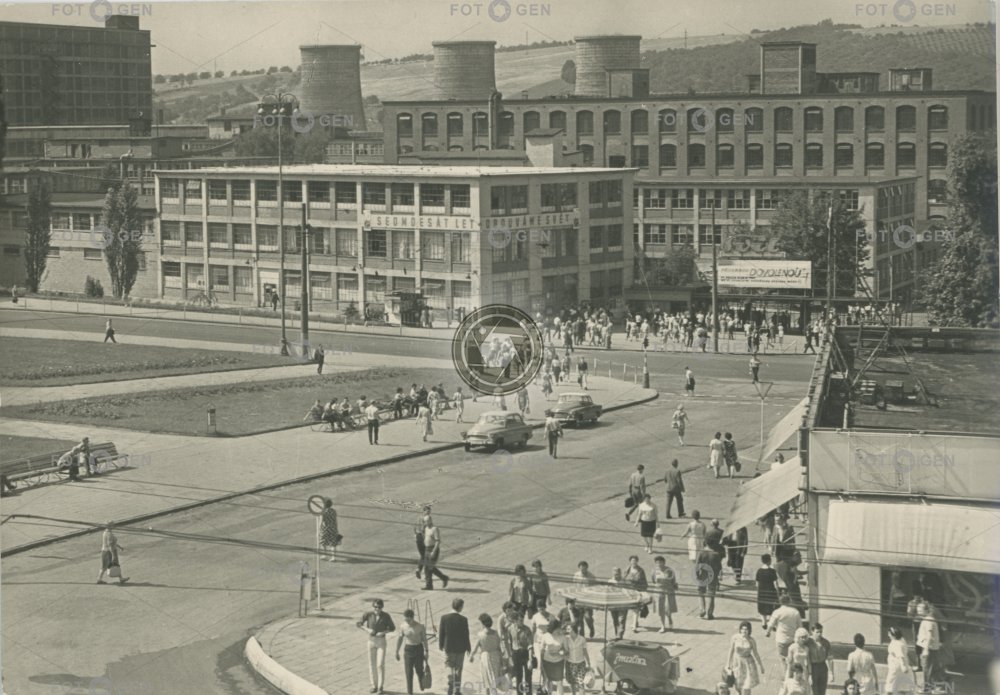1970 1970-1979 alive Baťa factory Baťovy Baťovy závody condensation tower factory Gottwaldov kondenzační věž kraj místopis náměstí pouliční ruch square street traffic Svit topography továrna závody Zlín Zlínský živá