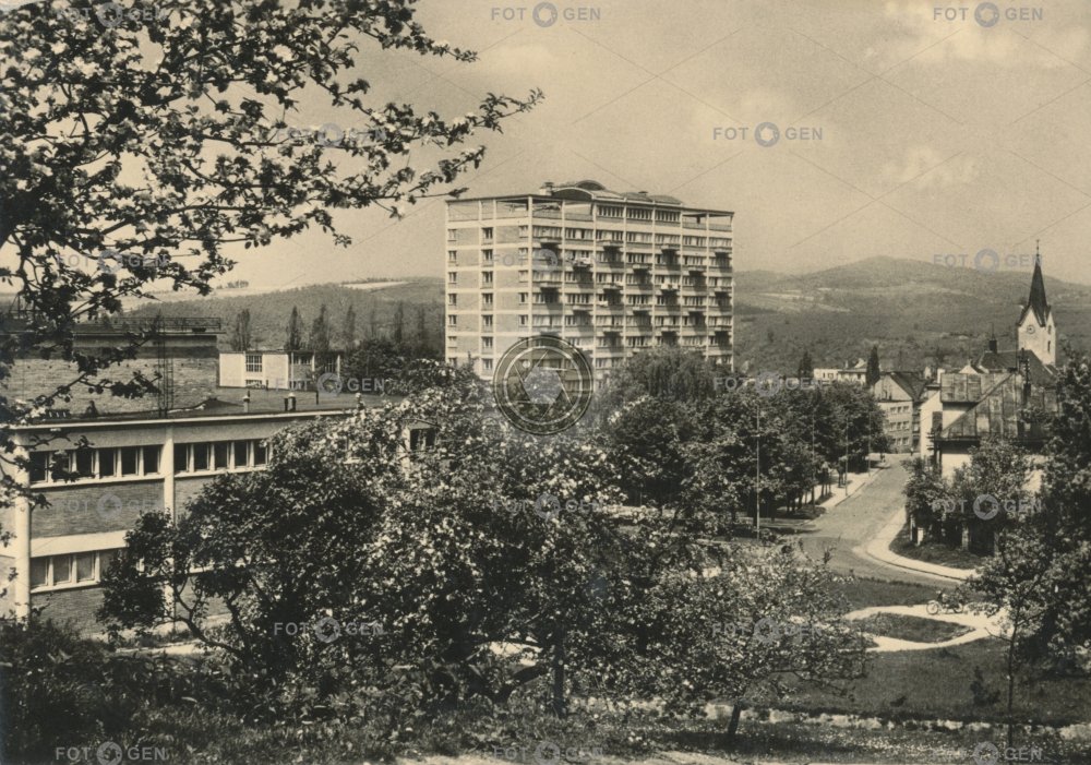 Zlín (Gottwaldov) Kolektivní dům, ulice Osvoboditelů a zcela vlevo budova Městské lázně Zlín Zlín (Gottwaldov) Collective house, Osvoboditelů street and the building of the Zlín Municipal Spa on the far left