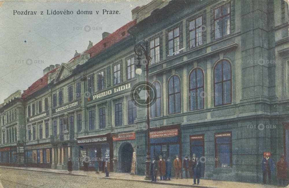 barevná baroko colored cultural Heritage Folk house Hybernská Hybernská ulice Kinských kolorovaná kulturní památka Lidový dům místopis New Town Nové Město pouliční lampa Prague Praha Právo redakce street lamp topography