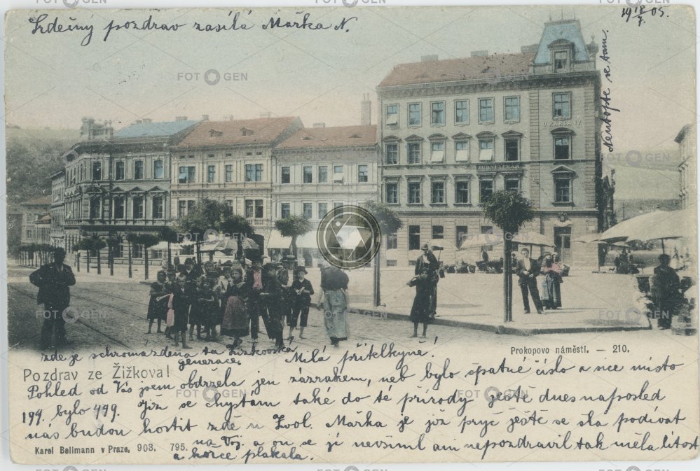 1905 alive barevná colored Karel Bellmann místopis Prague Praha Prokopovo náměstí topography živá Žižkov
