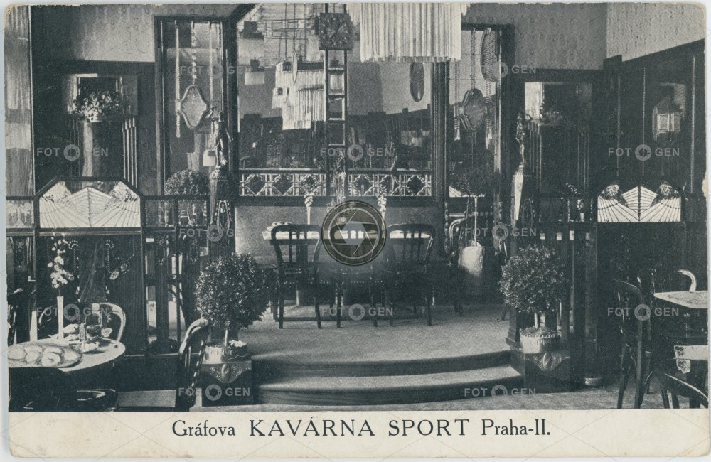1910 cafe equipment furniture Graf Gráfova hotel chair I. P. Pavlova interiér interior kavárna kavárna Sport Komenského místopis nábytek Prague Praha tabule topography vybavení židle