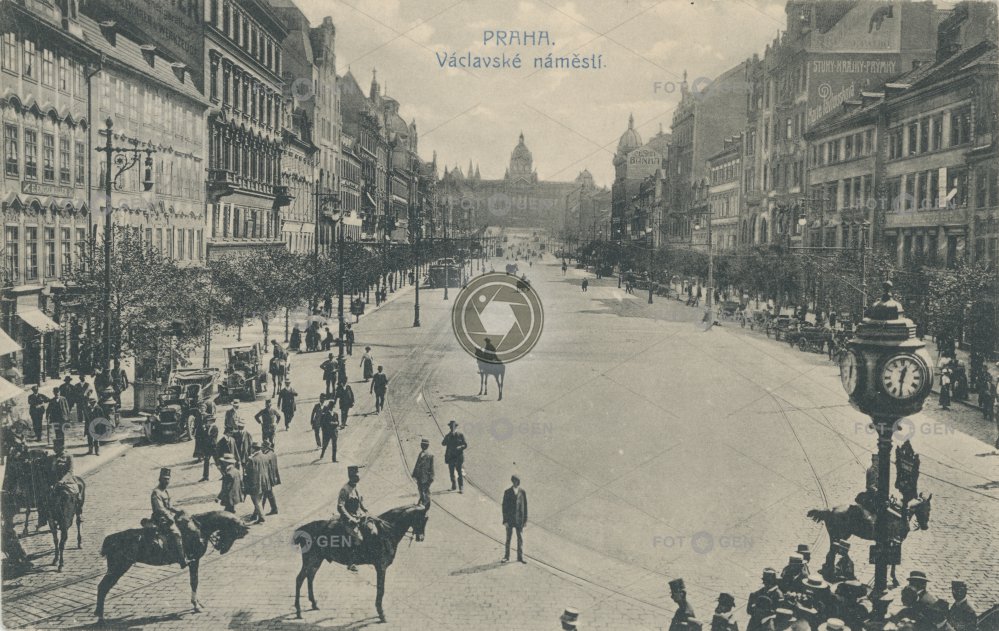1912 army auto car clock event hodiny horse Koňský trh kůň lidé Menschen místopis Národní muzeum New Town Nové Město people pouliční hodiny pouliční osvětlení Prague Praha Soldat soldier street clock topography událost Václavák Václavské náměstí vojáci voják vojna vojsko Wenceslas Square