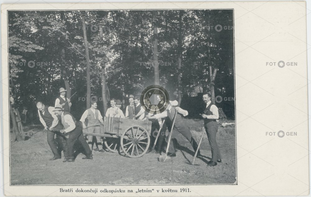 1911 alive barrow dobové oblečení dvoukolák man místopis muž period clothes práce Prague Praha topography Vinohrady work workers živá