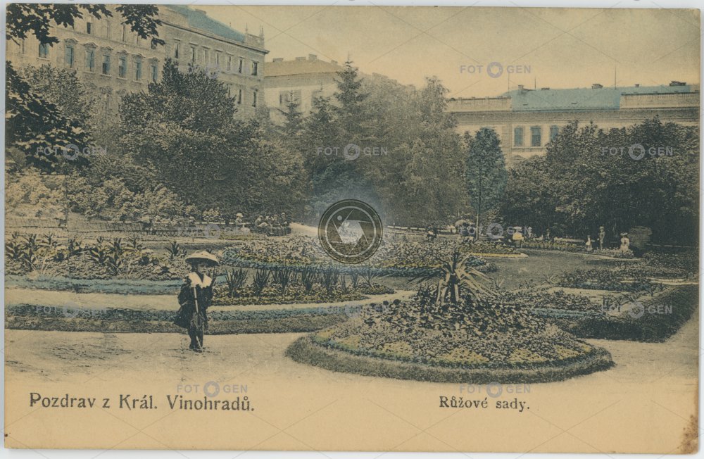 1900 barevná colored Královské Vinohrady místopis orchards Prague Praha Royal Vineyard Royal Vineyards Růžové sady sady set Svatopluka Čecha topography Vinohrady