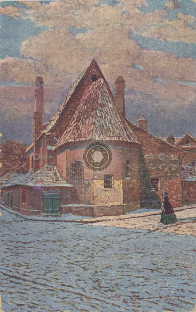 art barevná color colored drawing church Jana Křtitele Kirche kolorovaná kostel kresba malba místopis Na Prádle painting Prague Praha topography umění