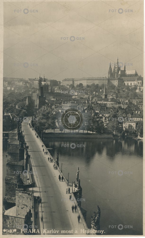1940 celkový Hradčany Charles Bridge Karlův most katedrála svatého Víta Lesser Town Malá Strana místopis panorama Prague Prague Castle Praha Pražský hrad river řeka St. Vitus Cathedral topography Vltava