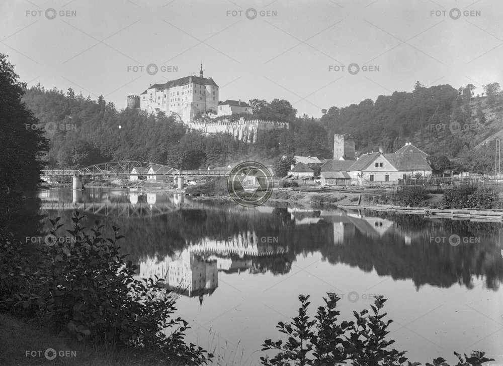 bridge castle celkový pohled Český Šternberk fortification general view hrad místopis most opevnění Posázaví river ruins řeka Sázava topography tower věž zřícenina