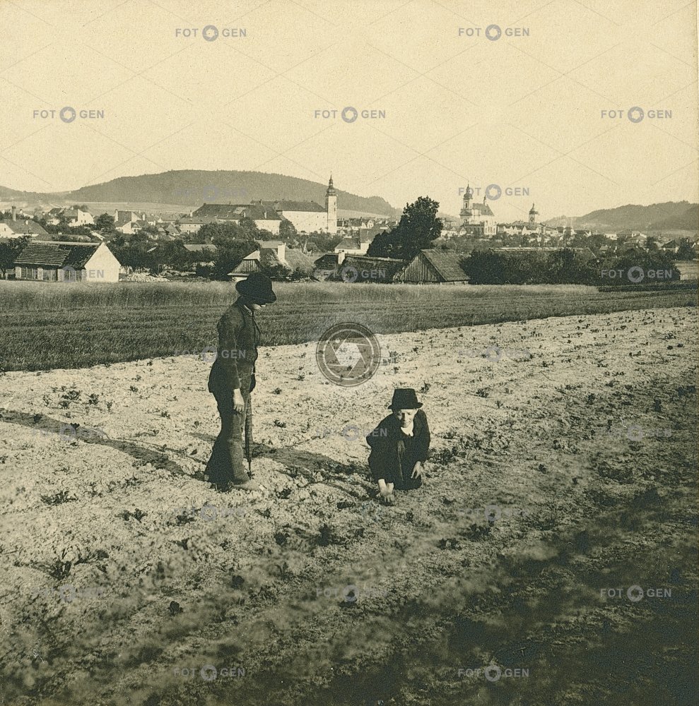 děti ethnology etnologie field Hranice children Mährisch Weißkirchen místopis pole práce sadba seedling topography work