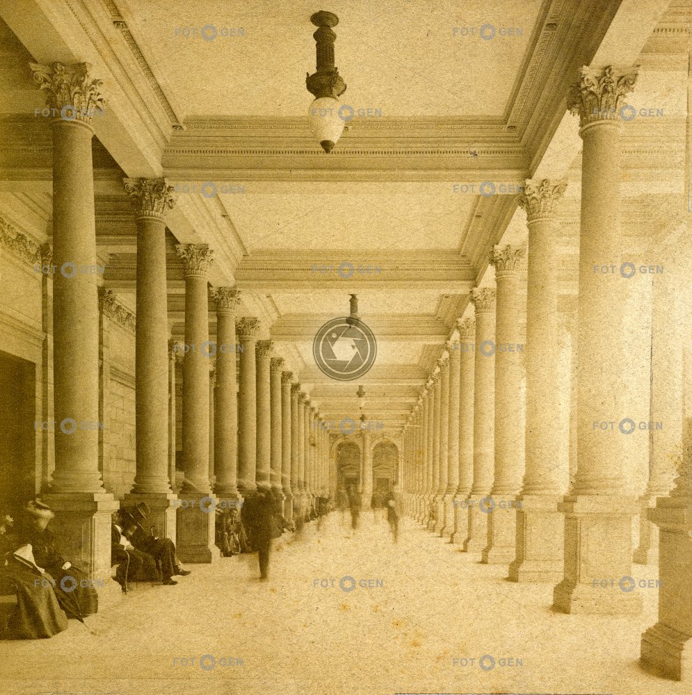 columns interiér interior Karlovy Vary Karlsbad lamp lampa lázně leisure Mill Colonnade místopis Mlýnská kolonáda posezení sitting sloupy spa topography volný čas