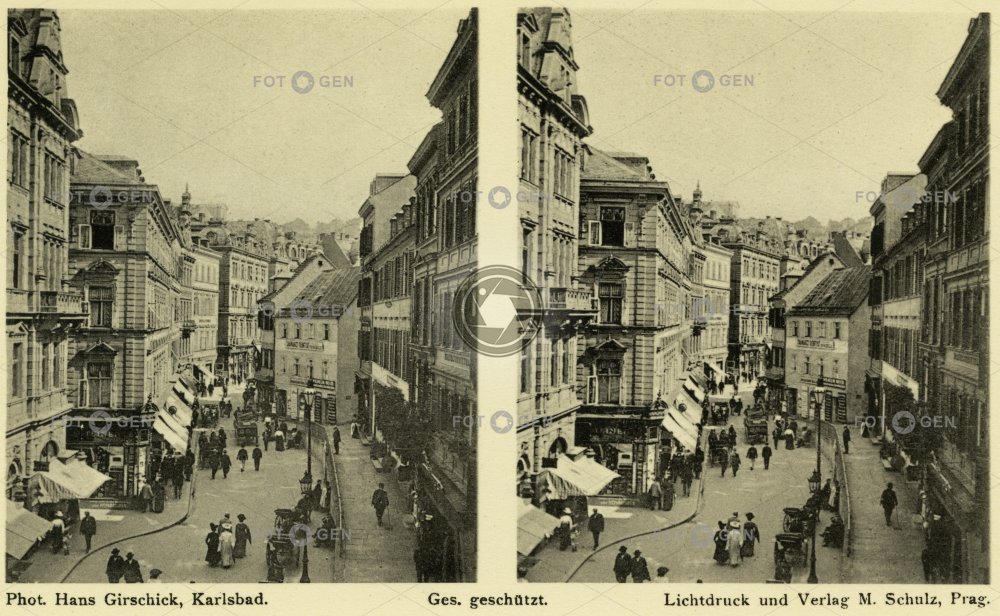 bird's eye view Karlovy Vary Karlsbad lázně Mill street místopis Mlýnská ulice Mühlbrunngasse pouliční ruch ptačí perspektiva spa street traffic topography