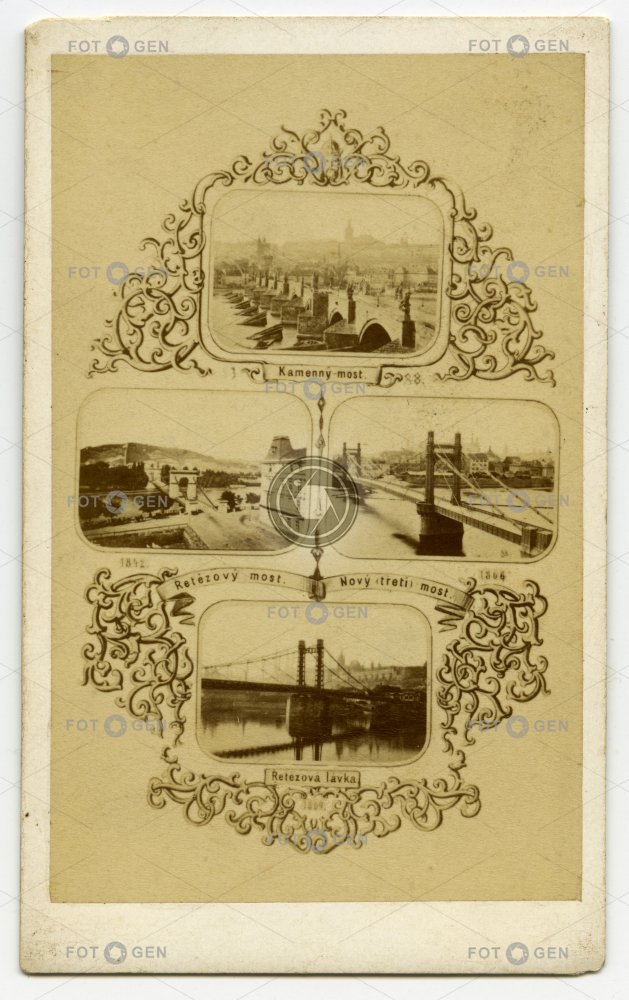 Čyři pražské mosty na mozaikové vizitce, vizitka