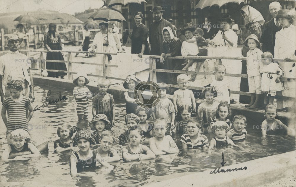 1922 alive bath bathing cap bathing clothes bathing suit bazén bazény dámy děti dobové oblečení children klobouky koupací čepice koupající koupaliště leisure lidé místopis Ocna Sibiului parasol period clothes period dressed plavci plavky pláž plovárna pool Romania Rumunsko slunečník swimming swimming pool topography Vízakna volný čas živá