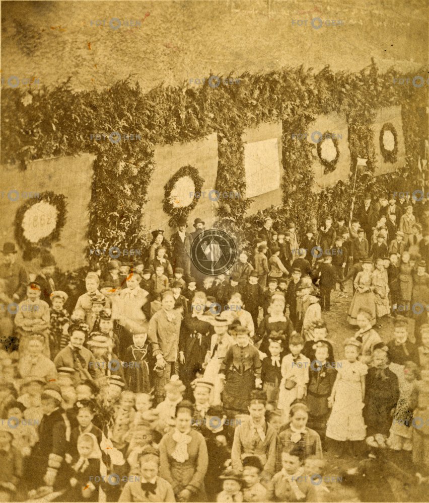 Děti na slavnosti Amerického klubu dam na počest padesátin Vojty Náprstka na oslavu stavby Průmyslového muzea a česko-amerického sirotčince, 17. 4. 1876, kabinetka