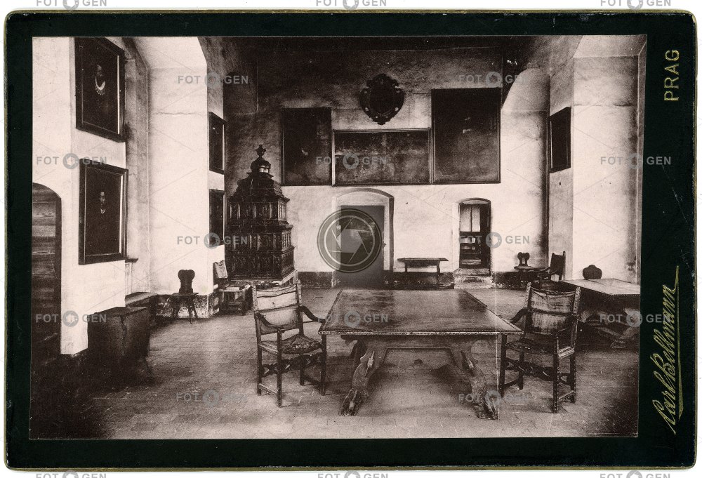 dějiny governor history hrad chair kamna kancelář Kingdom of Bohemia Království české místodržitel místodržitelství místopis office politics politika Prague Praha roost stove stůl table topography židle