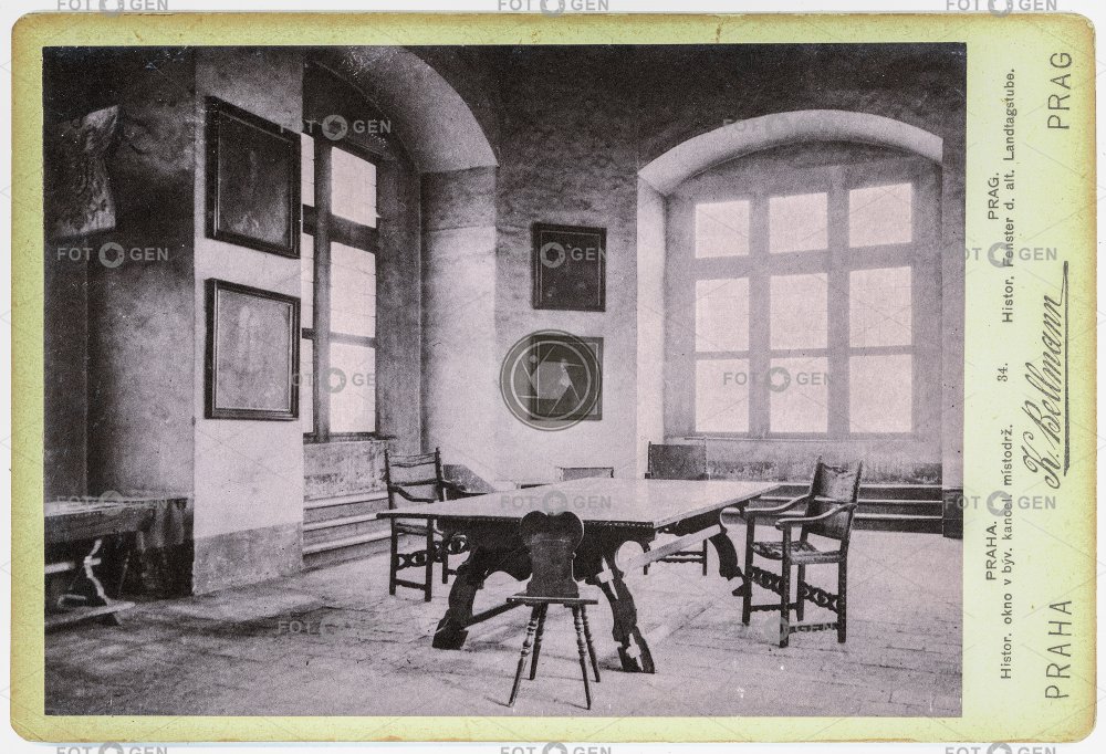 dějiny governor history hrad chair kancelář Kingdom of Bohemia Království české místodržitel místodržitelství místopis office okno politics politika Prague Praha roost Slavata stove table topography window židle