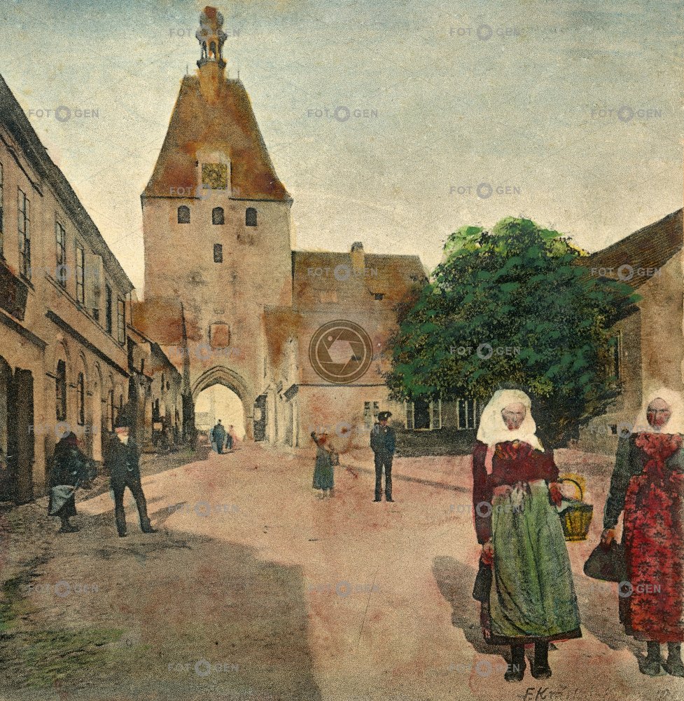 brána city clothing coloring costume Dolní brána Domažlice ethnology etnologie fortification gate kolorování kroj Lower gate market město místopis oděv opevnění topography trh women ženy