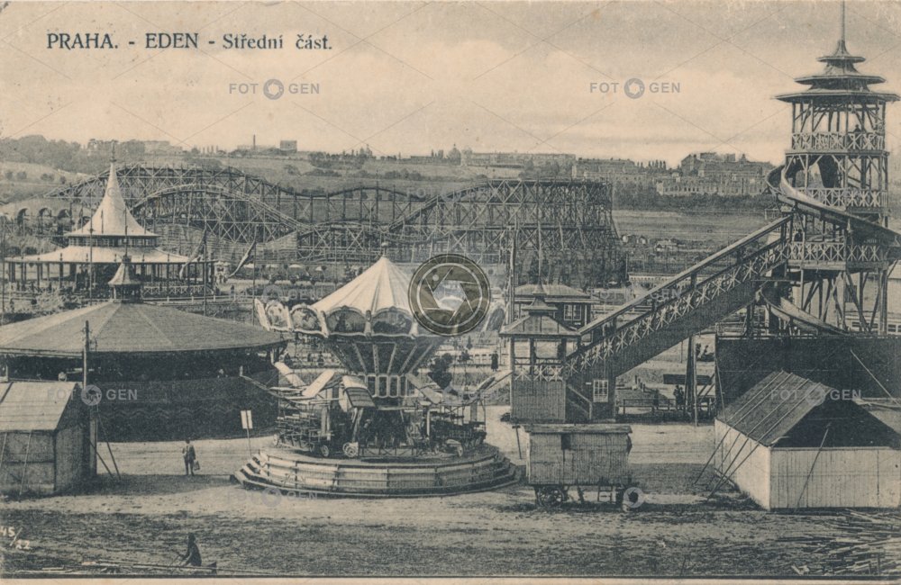1922 Amusement park atrakce carousel dráha Eden horská horská dráha kolotoč maringotka místopis neexistující neexistující objekt non-existent nonexistent building park Prague Praha rollercoaster skluzavka sportovní topography Vršovice zábava zábavní zábavní park