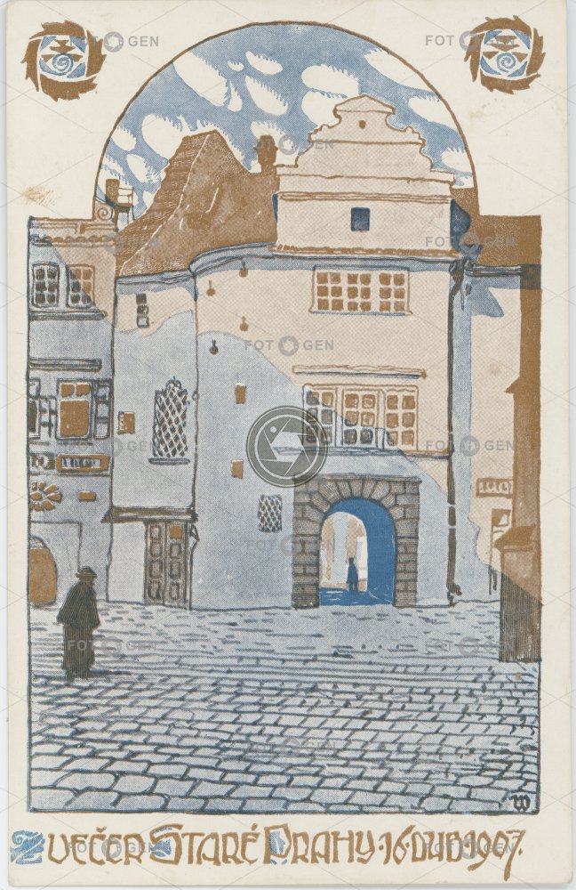 1907 barevná color colored drawing Klub za Starou Prahu kolorovaná kresba malba místopis painting Passage Prague Praha průchod Starou Prahu topography