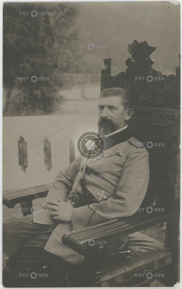 beard celebrity cigareta cigarette commendation decoration Ferdinand I of Romania Ferdinand Rumunský Hohenzollern Hohenzollernové House of Hohenzollern chair king král křeslo medal osobnosti portrait portrét Romania Rumunsko řád uniform uniforma vousy vyznamenání židle