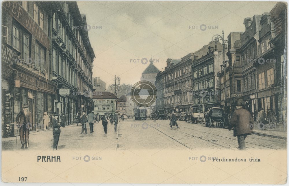 1902 alive colored Ferdinandova kolorovaná kolorovaný světlotisk místopis Národní Nové Město Old Town osvětlení Plateys Platýz pouliční lampa Prague Praha Staré Město street lamp the New Town topography živá