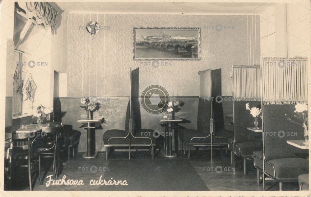 1939 Bisenz boxy Bzenec confectioner's cukrárna cukrářství Fuchsova furniture interiér leisure místopis nábytek seating furniture sedací nábytek topography volný čas