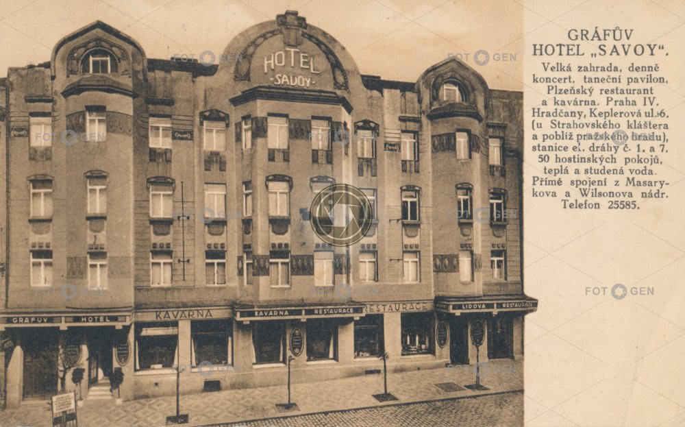 1930 Art Nouveau cafe Gráfův hospoda hostinec hotel Hradčany kavárna Keplerova leisure místopis Prague Praha pub restaurace saloon Savoy secese topography volný čas