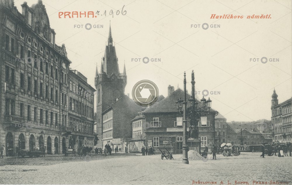 1906 alive barrow belfry cast iron dvoukolák gas handcart Havlíčkovo Jerusalémská Jindřišská věž kandelábr lamppost lighting litinový místopis New Town Nové Město osvětlení plynový pouliční lampa Prague Praha ruční vozík Senovážné square street lamp topography U Linků U tří jezdců věž zvonice živá