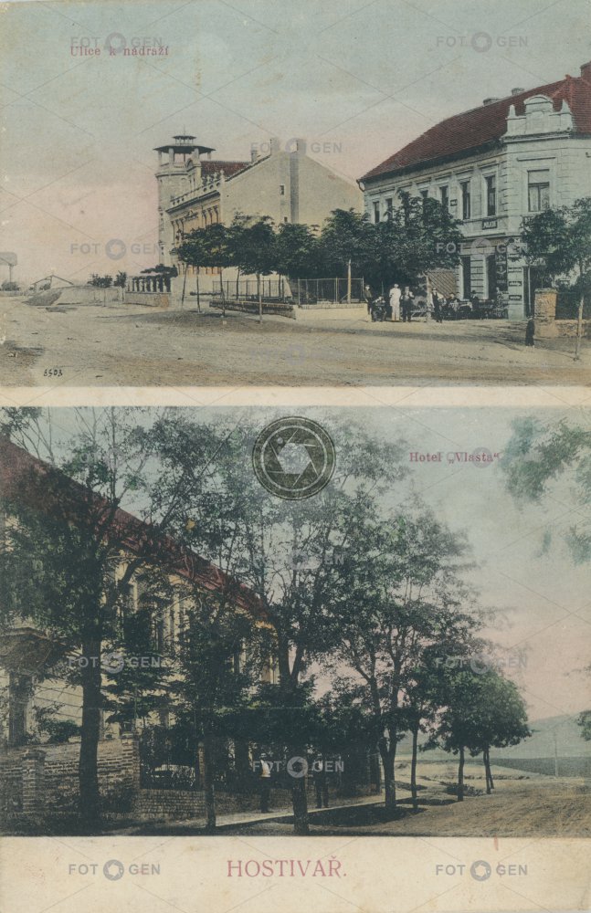 1913 barevná color colored Hostivař hotel hotel Milion K nádraží kolorovaná místopis Prag Prague Praha pub restaurace topography ulice Vlasta