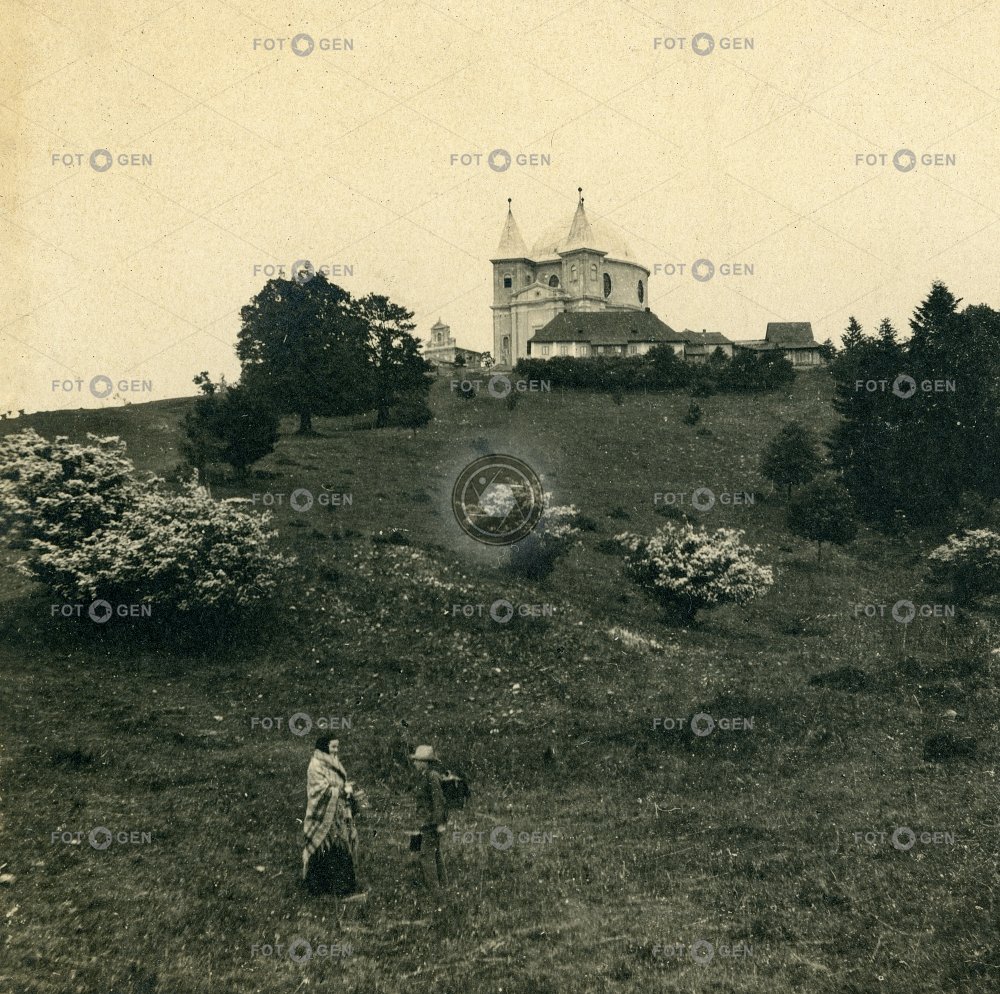 baroque building bushes castle hill church Jesuits Karlstejn Marian Meeting Mocker pilgrimage church place of pilgrimage purism reconstruction scaffolding topography tower