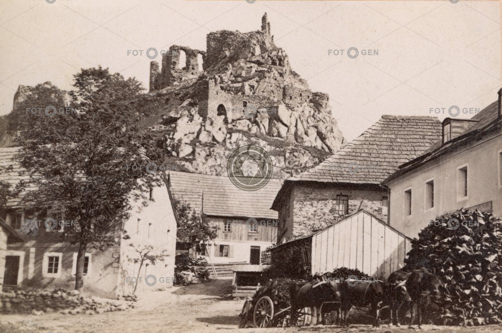 Andělská hora basalt castle cows čedič Engelhaus hill hrad kopec krávy městečko místopis Mount Angel povoz ruin topography wagon zřícenina