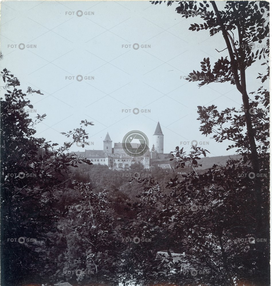 Hrad Křivoklát,  celkový pohled, polovina stereofotografie Autor: Eduard Petrák