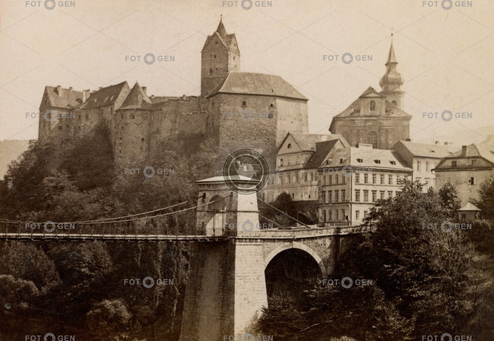 castle doprava Elbogen hrad chain bridge church kostel Loket místopis řetězový most topography transport údolí valley