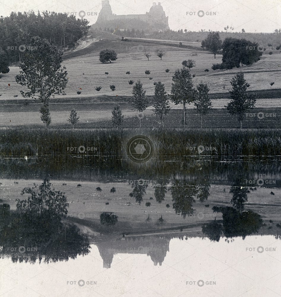Bohemian Paradise castle celkový pohled Český ráj general view hrad krajina Landscape mirror místopis pond reflection ruin rybník scenery / landscape topography trosky voda water zrcadlení zrcadlo zřícenina