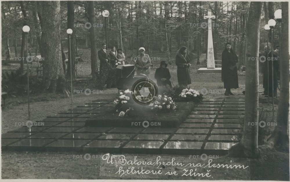 alive baby-carriage cemetery cross event forest forest cemetery hrobka hřbitov kočárek kříž lesní Lesní hřbitov lidé Marie Baťová Menschen místopis people pomník smuteční Tomáš Baťa tomb topography událost vdova věnec Zlín živá