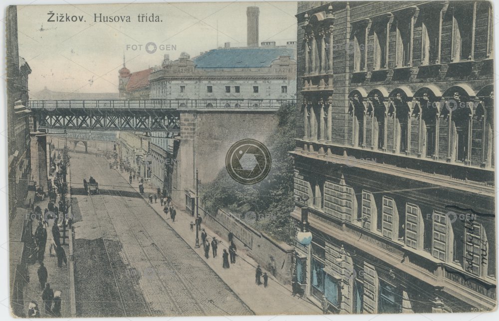 alive barevná colored husitská Husova Malá Hrabovka místopis neexistující neexistující objekt neexistující stavba non-existent nonexistent building Prague Praha railway bridge topography železniční most živá Žižkov
